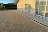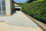 - Pose du béton lavé : nous appliquons une fine couche de béton lavé sur les pavés pour les sceller en place et créer une surface solide et durable.